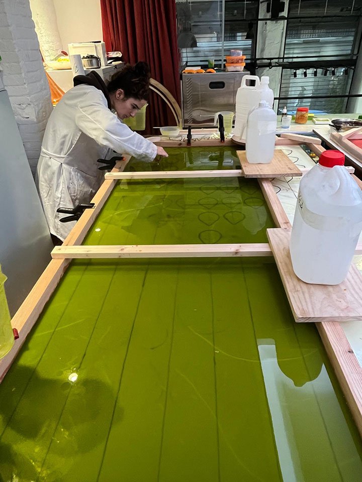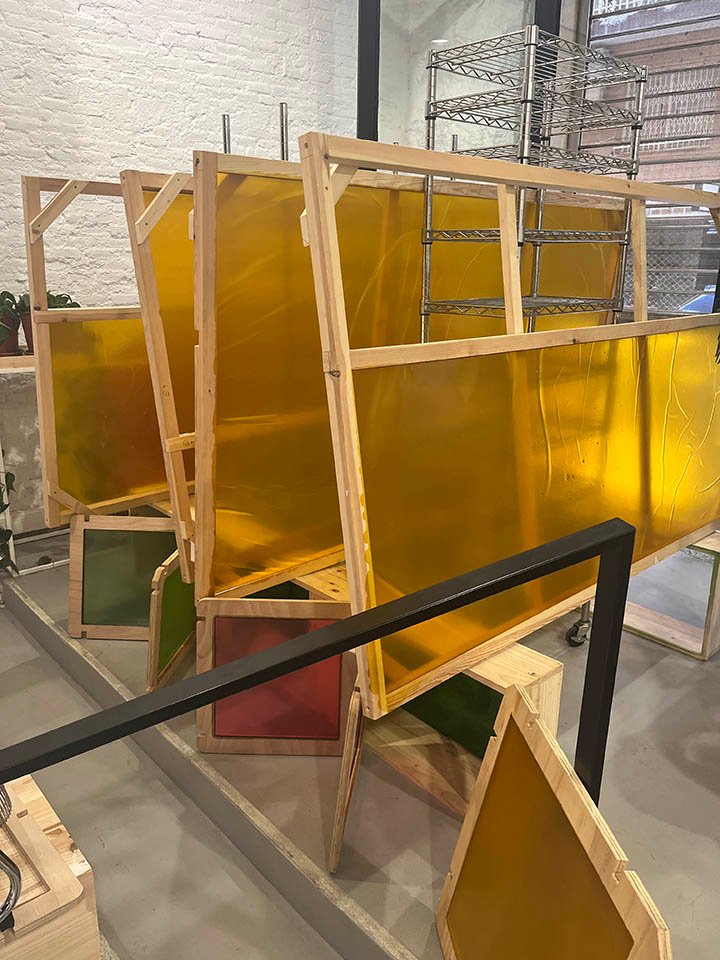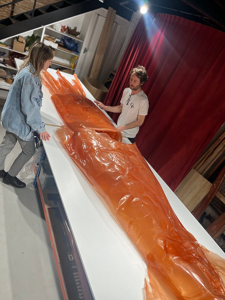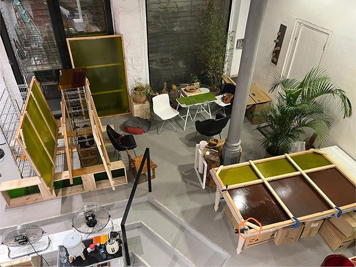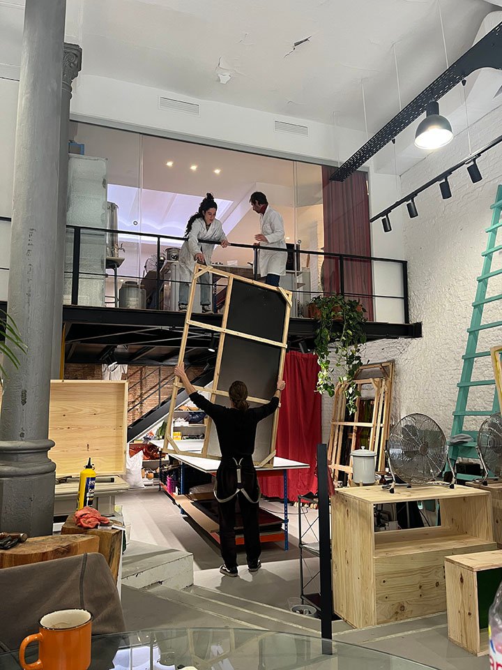 Ante esta preocupación, el museo nos invitó a colaborar para repensar el ciclo de los materiales, recuperando estructuras y elementos de exposiciones anteriores y dándoles una nueva vida mediante el uso de nuestros biomateriales.