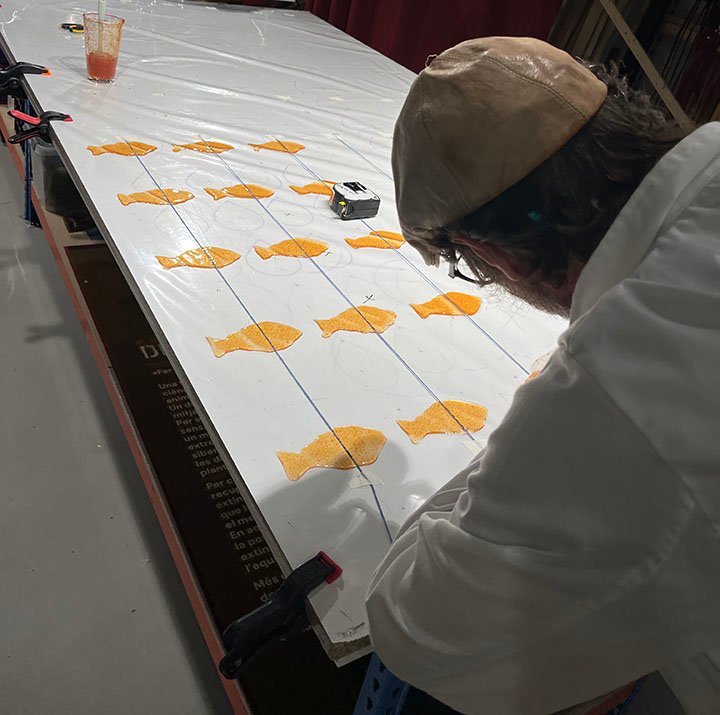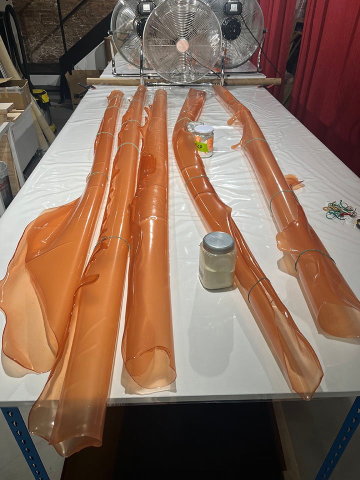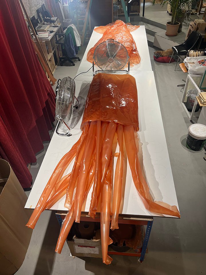 - Lula, un calamar gigante de 15 metros fabricado con Reolivar Air, 100% orgánico, completamente compostable y puede reciclarse fundiéndose y tomando nuevas formas. Para Lula reutilizamos componentes y materiales guardados de proyectos anteriores: en nuestro estudio nada se desperdicia.